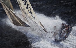 Marynistyka, malarstwo marynistyczne, obraz olejny z cyklu "Regaty", wymiary 80x60 cm. Obraz pokazuje magię i piękno żeglarstwa.
