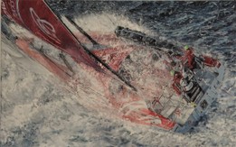 Marynistyka, malarstwo marynistyczne, obraz z serii "Regaty" . Malowany farbami olejnymi na płótnie o wymiarach 80x50 cm. I to na razie ostatni z tej serii, przyszła pora na uspokojeni wód mórz i oceanów na sztalugach.