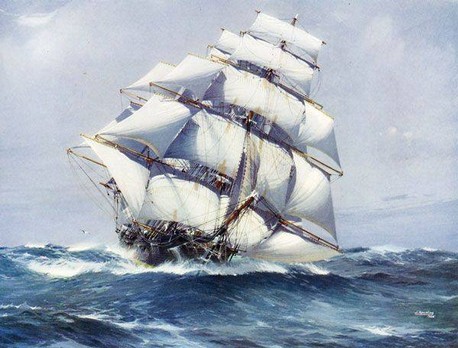 Marynistyka, malarstwo marynistyczne. Powrót do wspaniałej ery żaglowców i moja trochę zmieniona wersja obrazu Jacka Spurlinga "Flying Cloud". Obraz olejny malowany na zamówienie, o wymiarach 80X60cm..Marynistyka, malarstwo marynistyczne prezent dla żeglarza, żaglowce, obraz olejny.