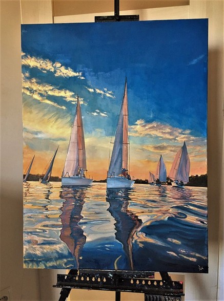 Witam Was w tych trudnych czasach koronowirusa. Chciałbym pokazać Wam mój nowy obraz napawający optymizmem i przywołujący miłe wspomnienia wakacji spędzonych na żaglach. To obraz o wymiarach 80X60cm malowany w ciepłych tonacjach barw farbami olejnymi. Welcome in these difficult times of the coronavirus. I would like to show you my new painting which is optimistic and evokes pleasant memories of sailing vacations. Its size is 80X60cm and it is painted in warm colors with oil paints.