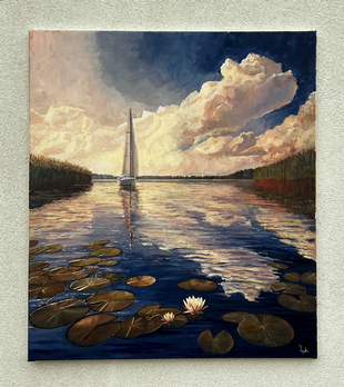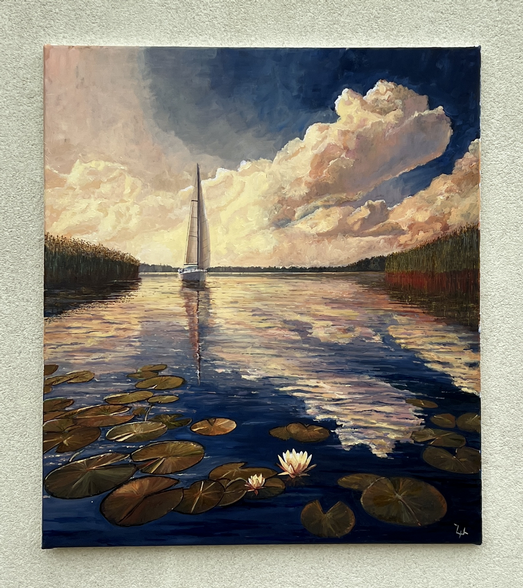 Przedstawiam kolejny mój obraz z serii" kolory wody ". W odróżnieniu od pogody za oknem ciepłe kolory tego obrazu tworzą nastrój spokojnego relaksu i letniego wypoczynku. To obraz olejny na płótnie o wymiarach 80X70cm. I present another painting from my "water colors" series. Unlike the weather outside, the warm colors of this painting create a mood of calm relaxation and summer rest. It is an oil painting on canvas measuring 80X70cm.