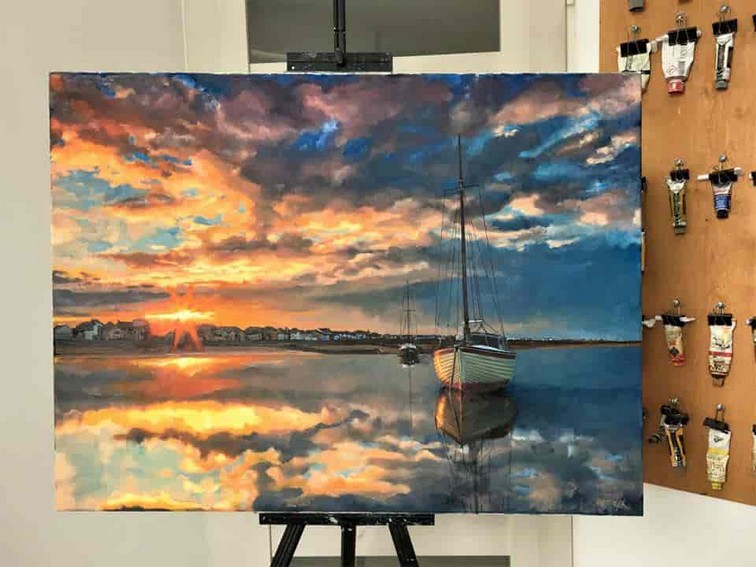 Marynistyka, malarstwo marynistyczne, Nastrój spokoju i wyciszenia to też jeden z elementów żeglarstwa. Dziś mój obraz, który na pewno wprowadzi taki nastrój w Waszym domu. Obraz olejny o wymiarach 80x60 cm. Feelings of peace and silence is also one of the elements of sailing.Today I present my painting, which will surely introduce such a mood in your home. Oil painting with dimensions of 80x60 cm.