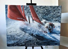 Obraz malowany farbami olejnymi z cyklu " Regaty". Obraz o wymiarach 80X60 cm .Czerwony kolor żagli podkreśla dynamikę obrazu i pokazuje walkę z żywiołem. I present my next oil painting from the "Regatta" series. It has dimensions of 80X60 cm. Red color of the sails emphasizes the dynamic image and shows the fight with the element .